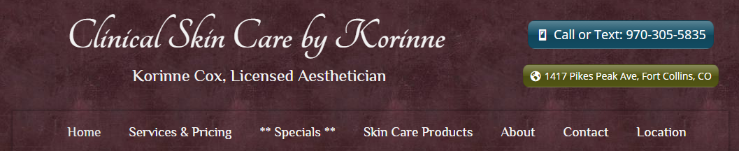 The “Call or Text” button is a call to action in the header of the Clinical Skin Care by Korinne website. In this theme – Weaver Xtreme, a theme with remarkable flexibility – the header region is constructed of side-by-side widgets, which stack neatly in mobile view. The Weaver theme does not, however, offer a sticky header option, or the bells and whistles of many contemporary themes.